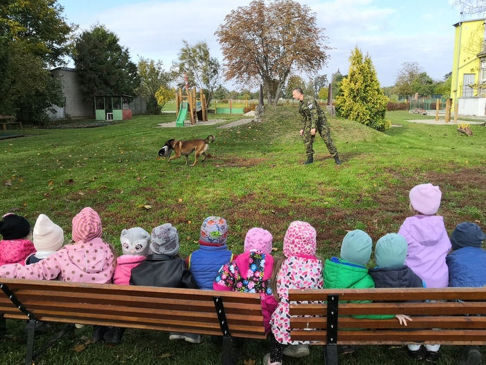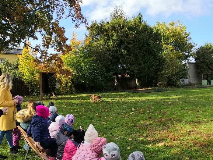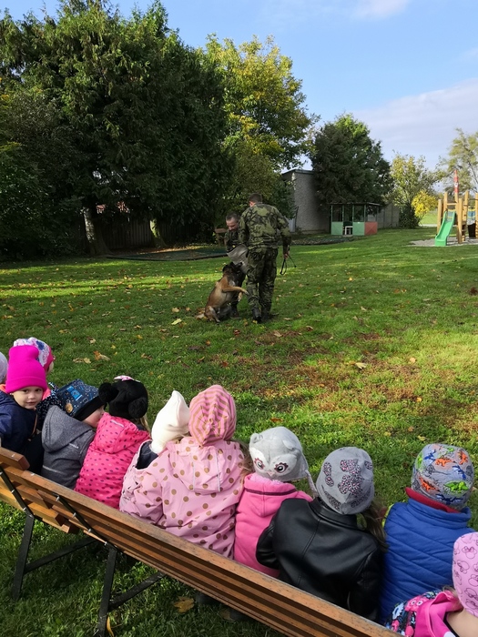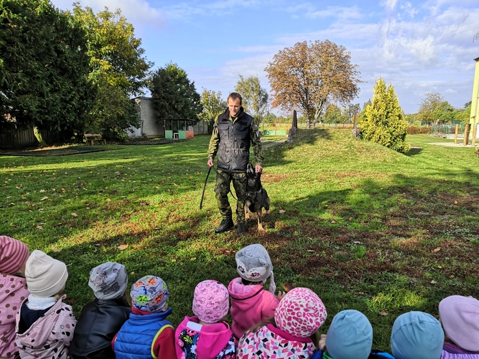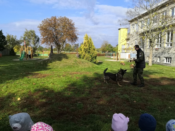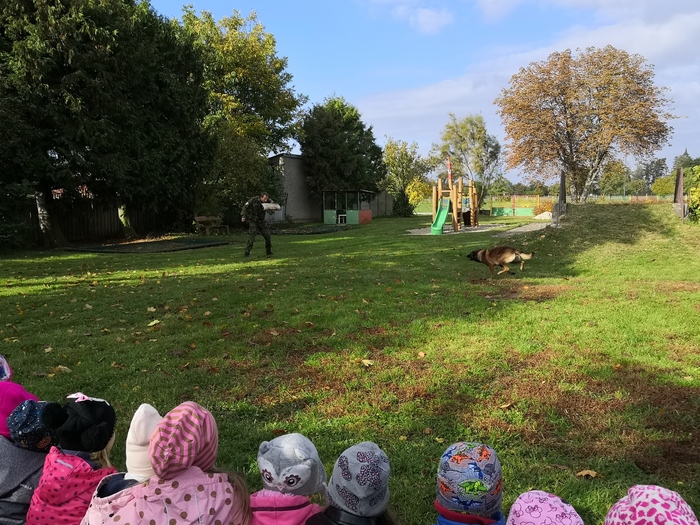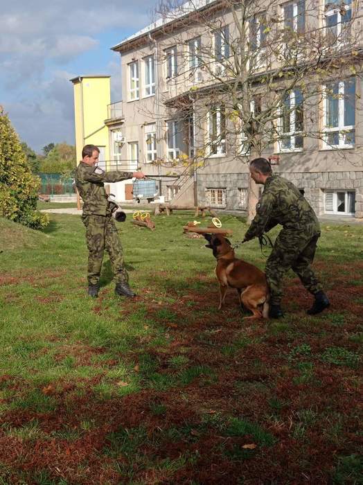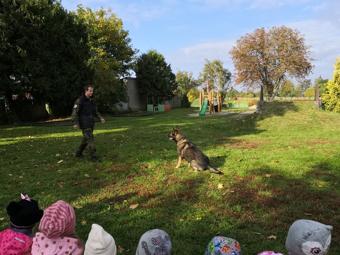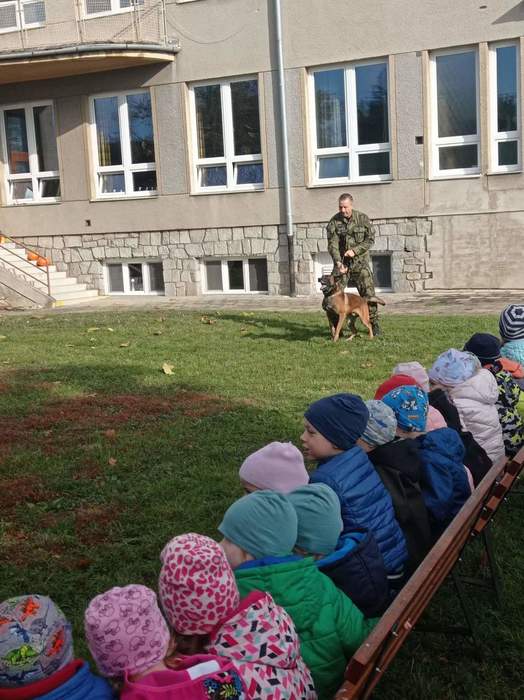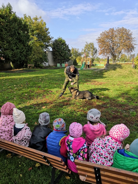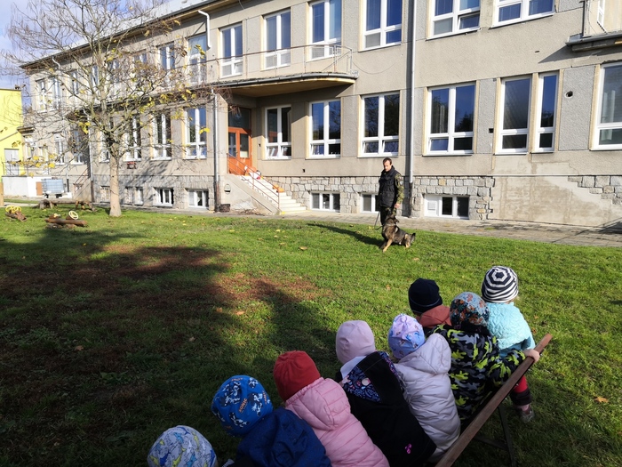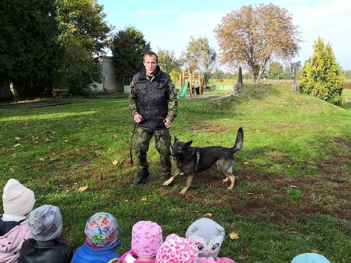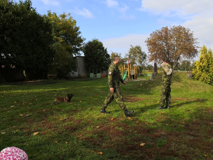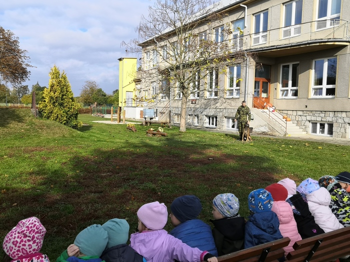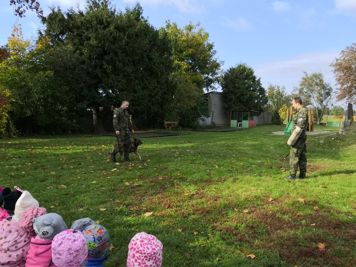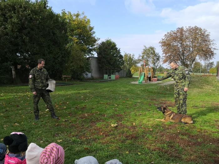 Ve školce nás navštívili vojenští psovodi a ukázali nám se svými psy poslušnost a obrany.